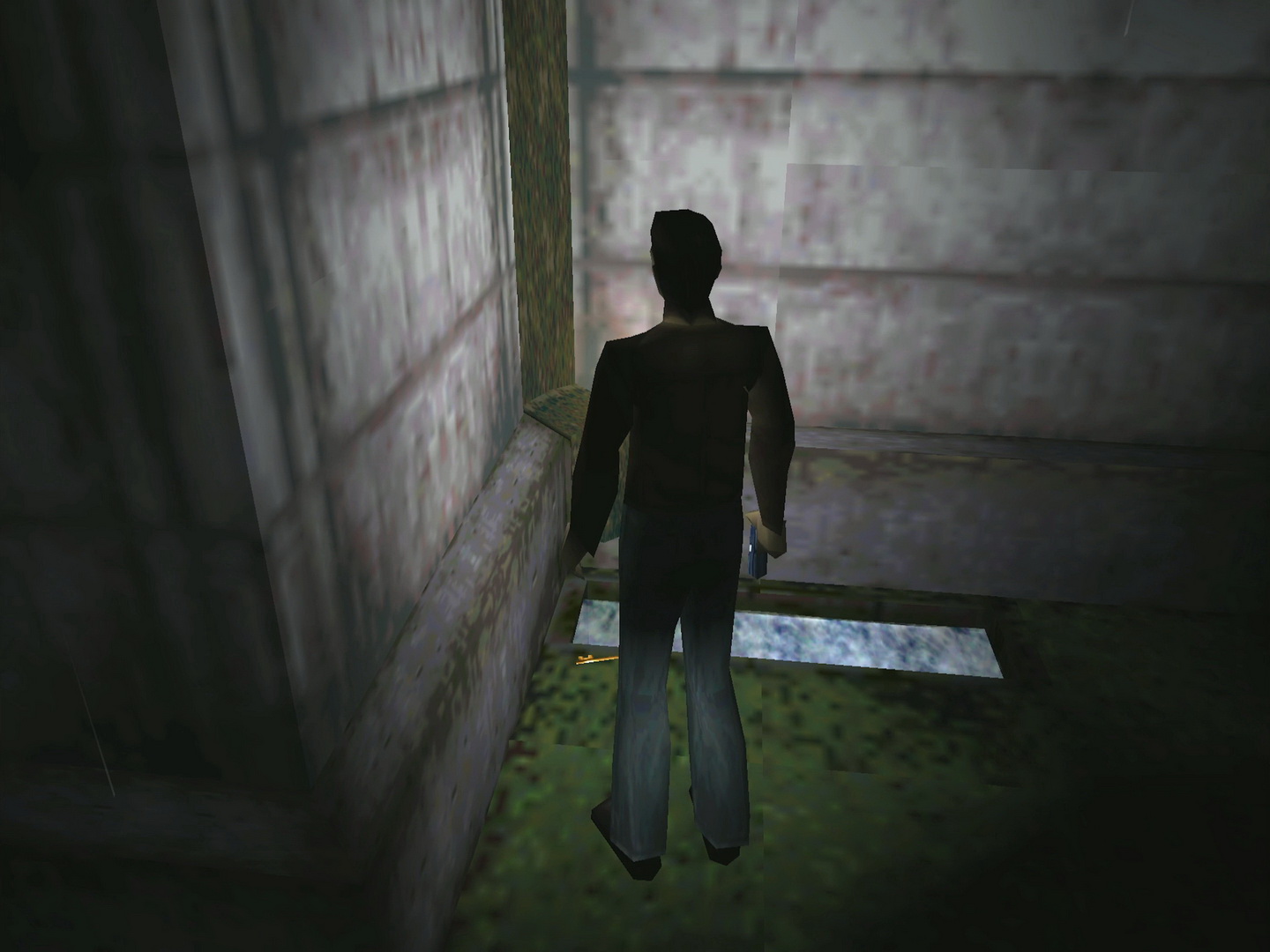 Getting any deja vu in here? You may remember this room of the normal school had a painting of this door. Now it's here for real... First grab the Handgun Bullets and check the door to find a thin horizontal slot at its center. In your inventory you may recognize something that certainly looks the part... use the Picture Card and pass through the door. First Floor Left Hallway: Warping to Second Floor WashroomsEntering the Girls' washroom just ahead will transport you to the Girls' washroom on the second floor, with nothing inside. But if you exit you'll remain on the second floor, where you can enter the Boys' washroom and find two boxes of Handgun Bullets and a box of Shotgun Shells on the floor. The rest of the 2F hall is blocked so access the Girls' room to transport to the 1F Girls' room, then exit to finish your warp adventure. Now enter the Boys' washroom on 1F and examine the door ahead to come across a stunning sight and the awesome 17 Shotgun on the ground. You'll also find a note on the right wall, alluding to something called "The Monster Lurks". Take note and leave the room. Now enter the lower Teacher's Room since the hallway is blocked midway, and make your way past the Grey Children and a Creeper to enter the next Teacher's Room. In the upper Teacher's Room, quickly kill the Creeper and grab the Handgun Bullets on the chair. Three blue phones are on the table but they won't work for Harry. Try to leave through the far door close to the phones and one will suddenly ring... Harry will answer for a short call. Leave to the top part of the left hall after. Consider unlocking the top hallway doors before proceeding up the stairs to the second floor and then again to the rooftop, which is now unlocked. RooftopThe camera angle changes at the right side, hinting at a hole by some blood. Examine it to notice a key hanging just out of reach. At the far end of the roof is a red valve. If you open it, water will enter the drainage system that leads to the key, but there's a hole in the corner that prevents the water from reaching it... Harry thinks he could plug it up somehow.