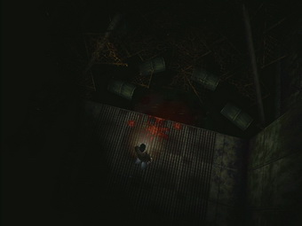 Still in the sewers, get the First Aid Kit on the grating to Harry's left and continue the other way. If you hold L2 to focus the camera just ahead you'll see several Scratchers hanging on the roof. You can get the drop on them by shooting them down, although it may trigger the rest to come down. Or just sprint through the area.