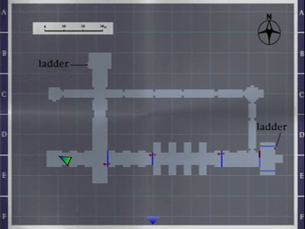 Follow the path along the wall to eventually reach what looks like an open office. Find the Sewer Map (Connecting to Resort Area) and Save Point on the table, and check the open key box for the 40 Sewer Key.