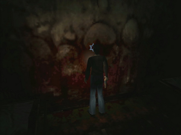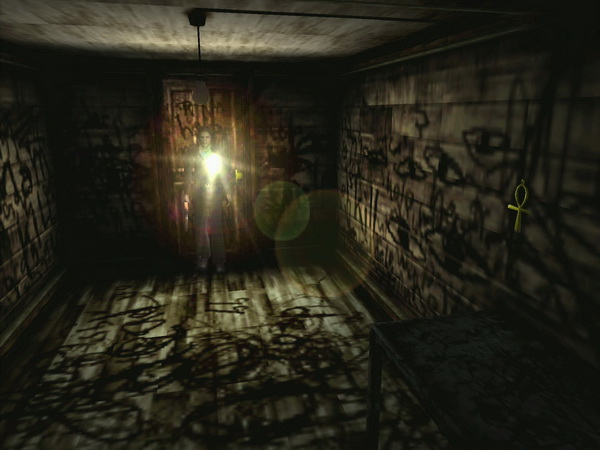 Enter the room directly ahead to hear a girl crying and see another apparition of Alessa in a graffiti-filled room. Grab the 60 Ankh on the wall and leave the room.