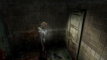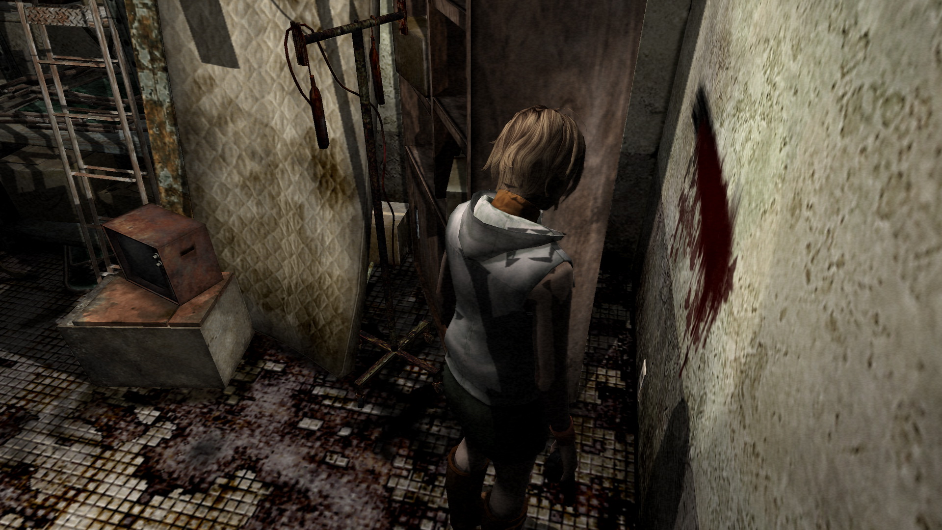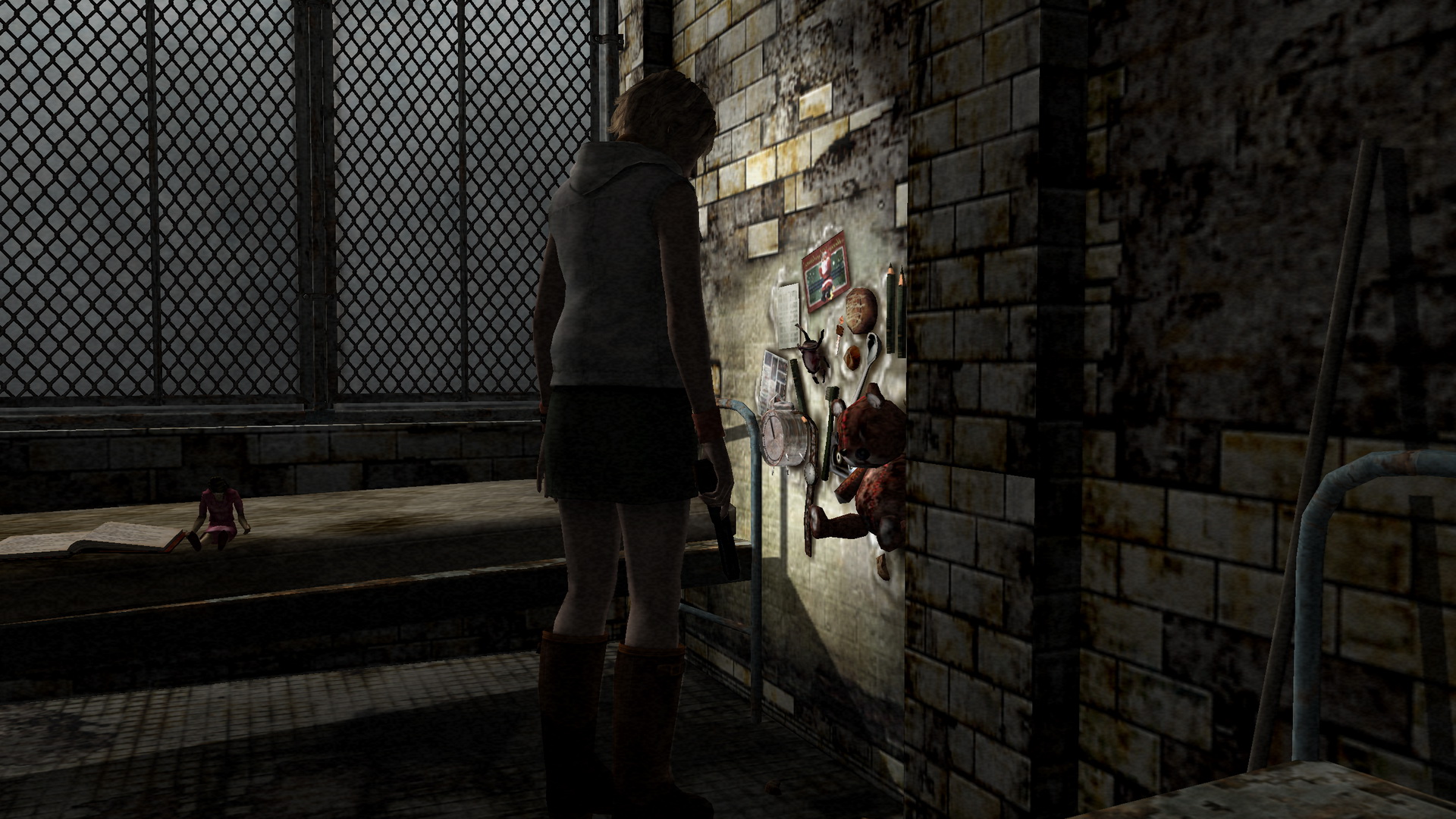 With a completed save of Silent Hill 2 on your memory card, you can experience extra scenes and references to it in this game, including one right here.