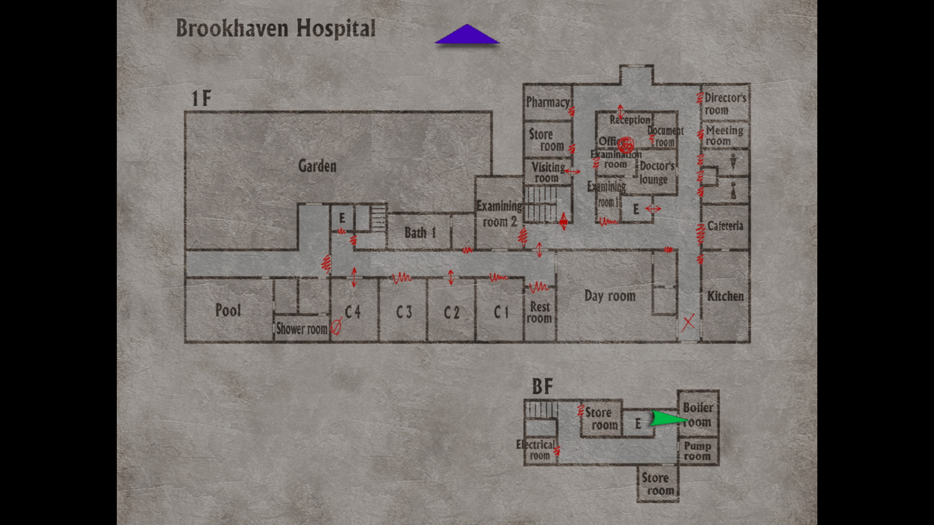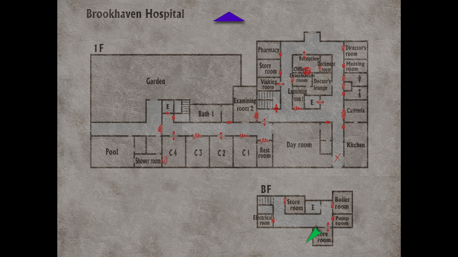 Inside the Reception right by the entrance you'll find the Hospital Map on the desk, a Health Drink in the closet by the entry door and a Save Point on the wall.