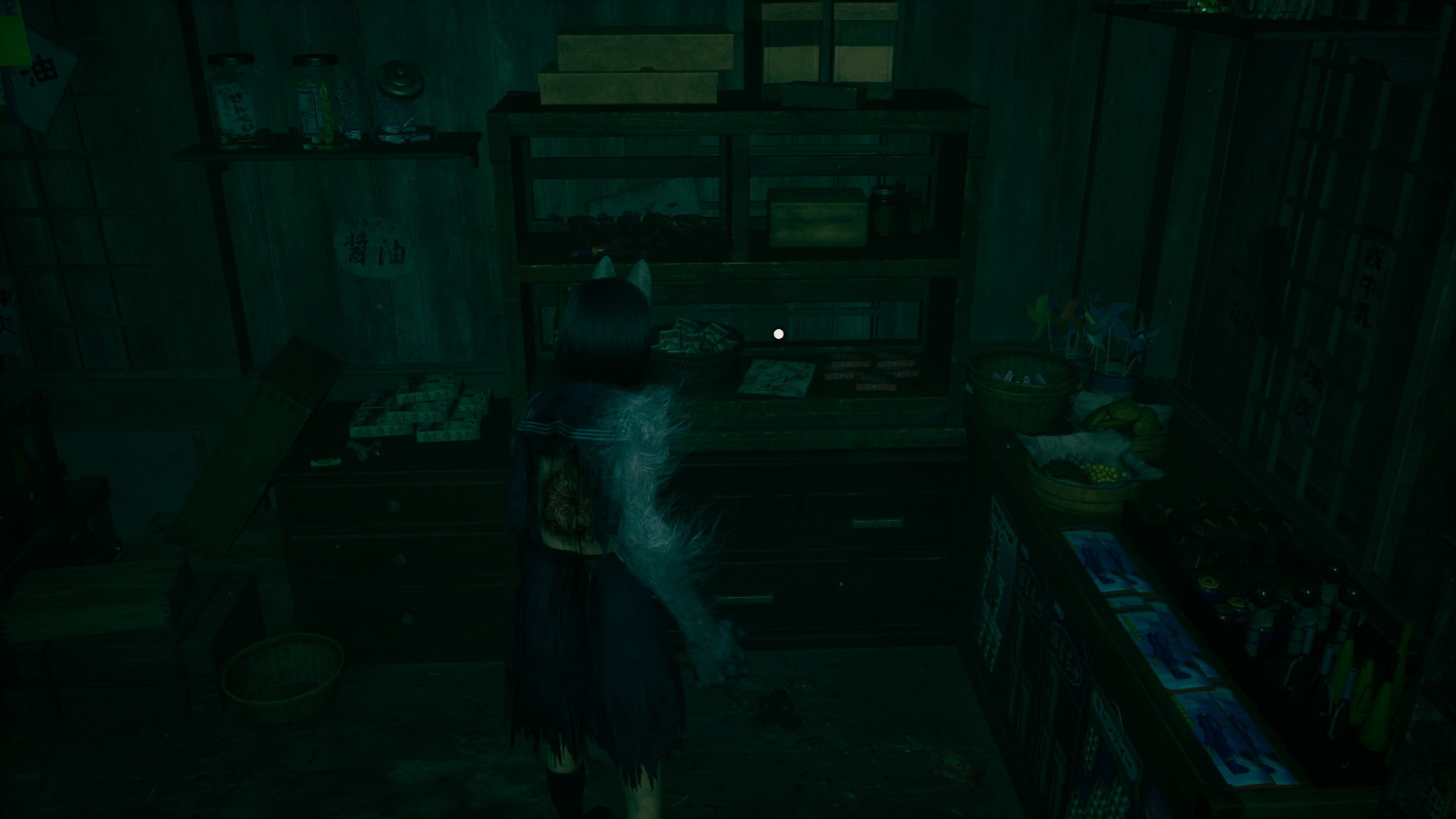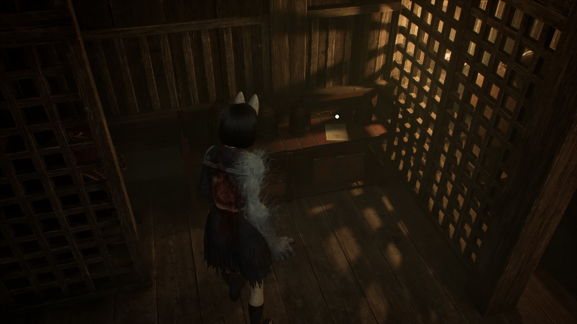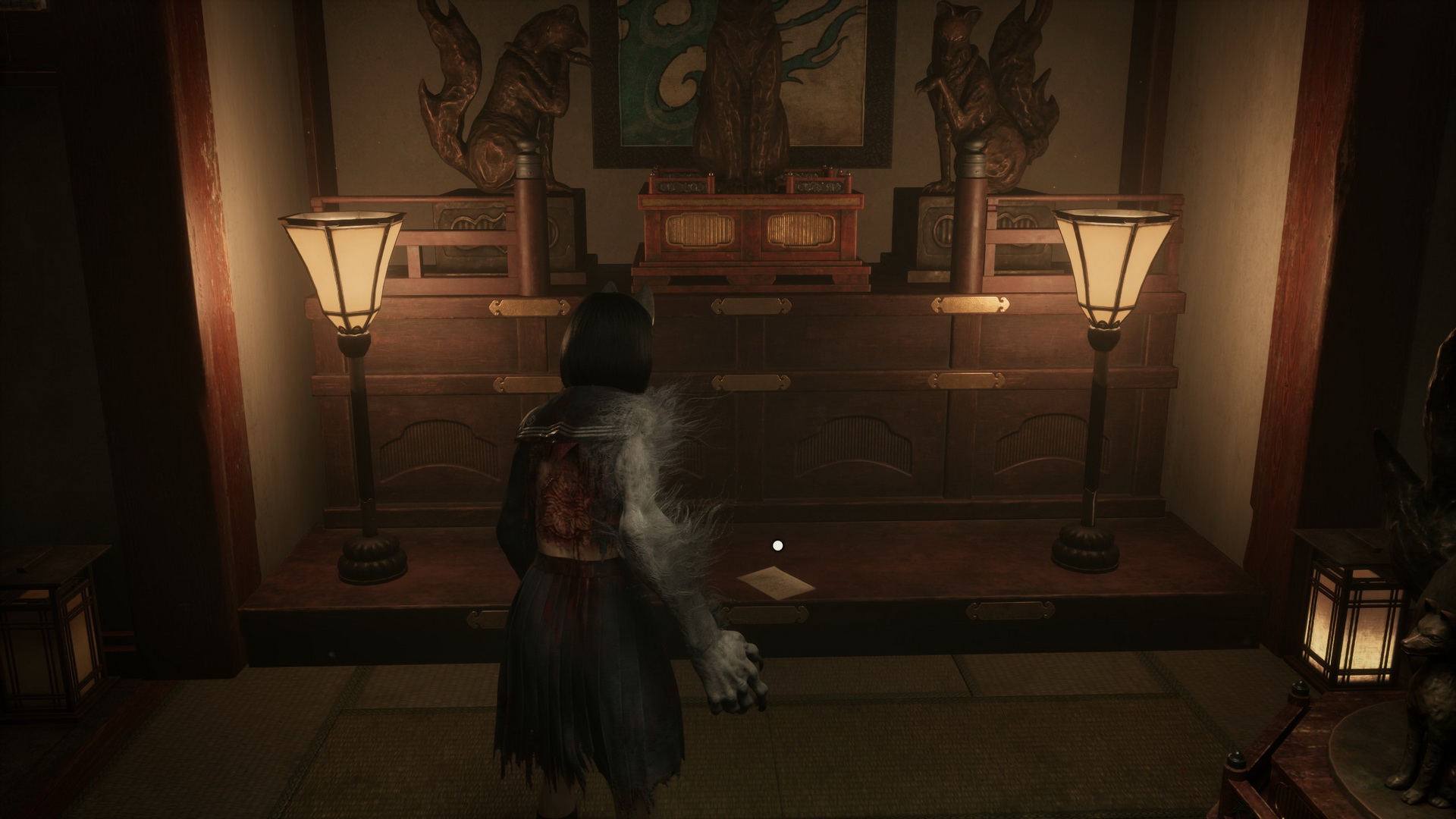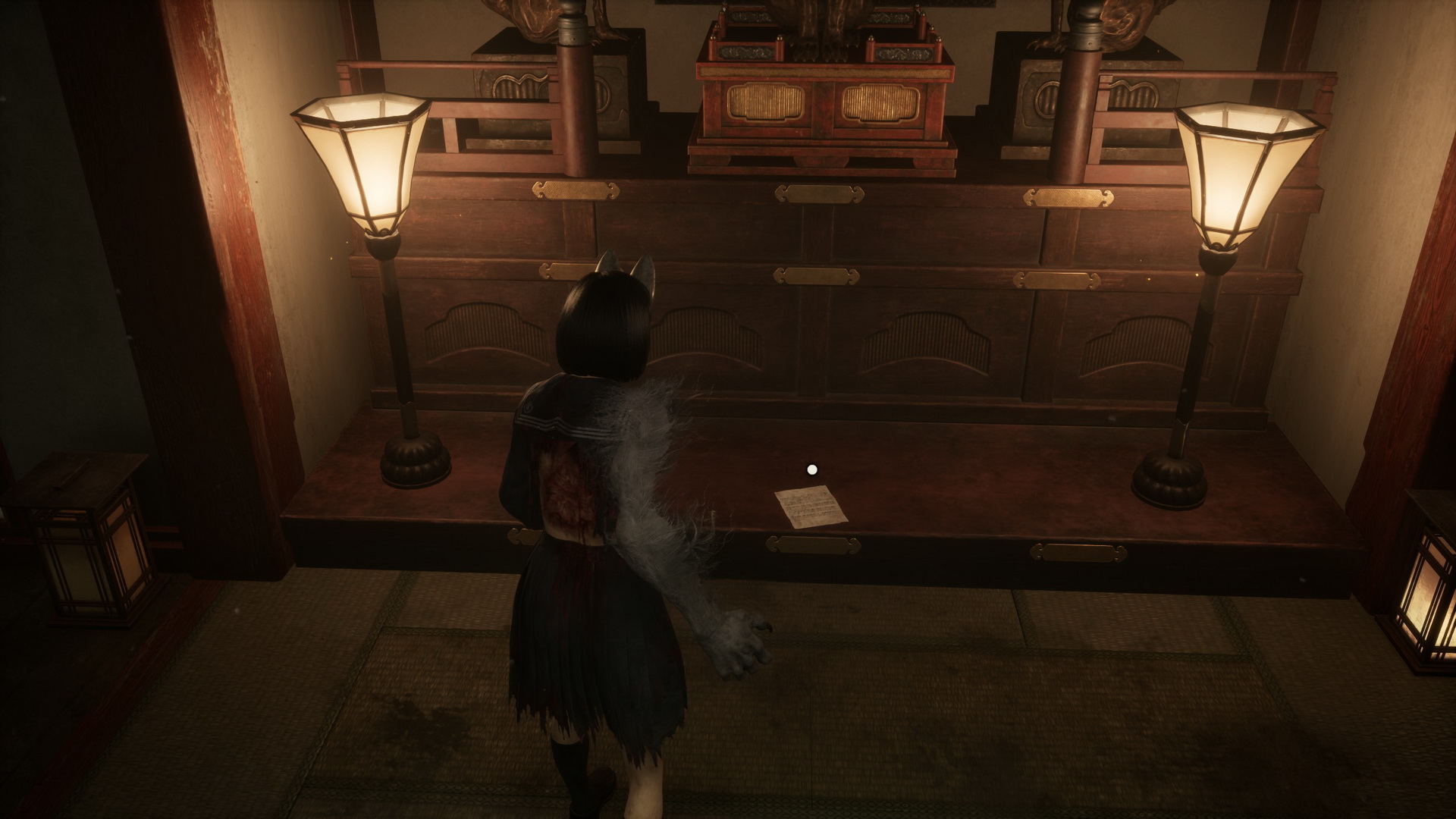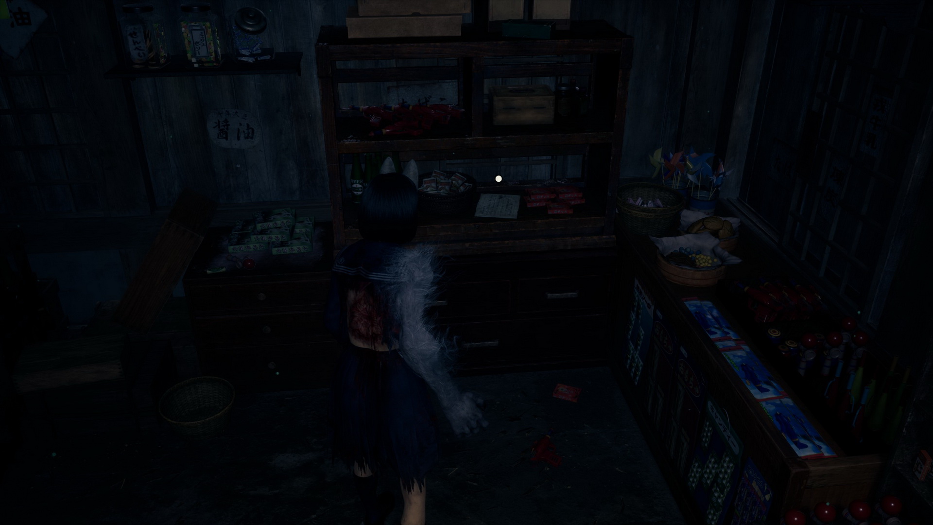 #2Location: Dark Shrine Worship Hall, on a bench in the Chizuruya General Store after flipping the lamp's switch.