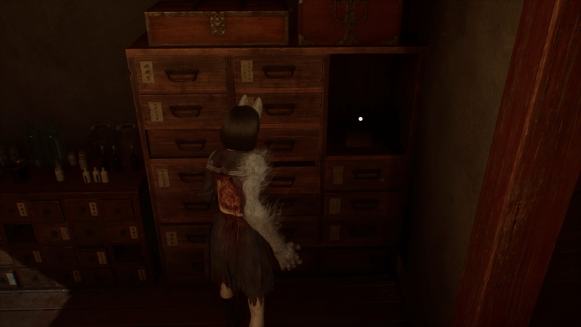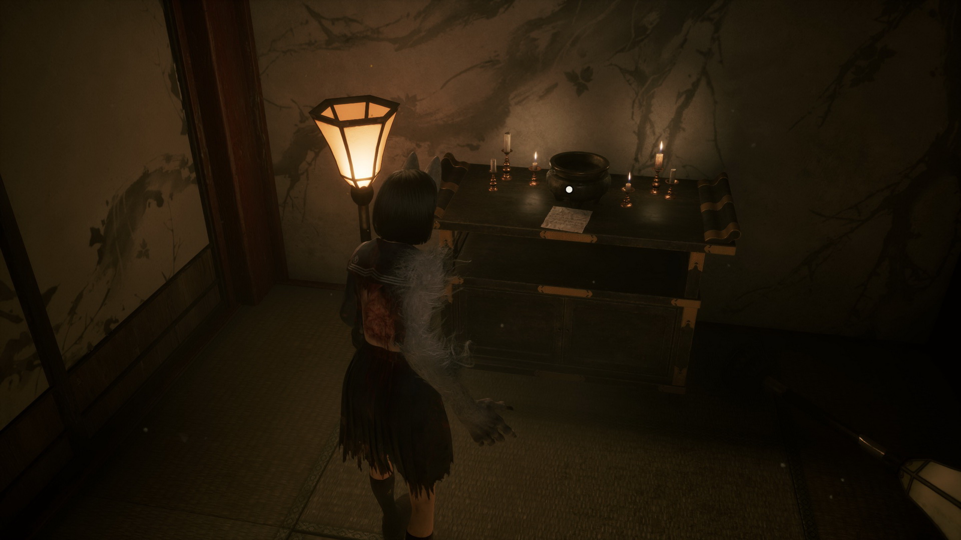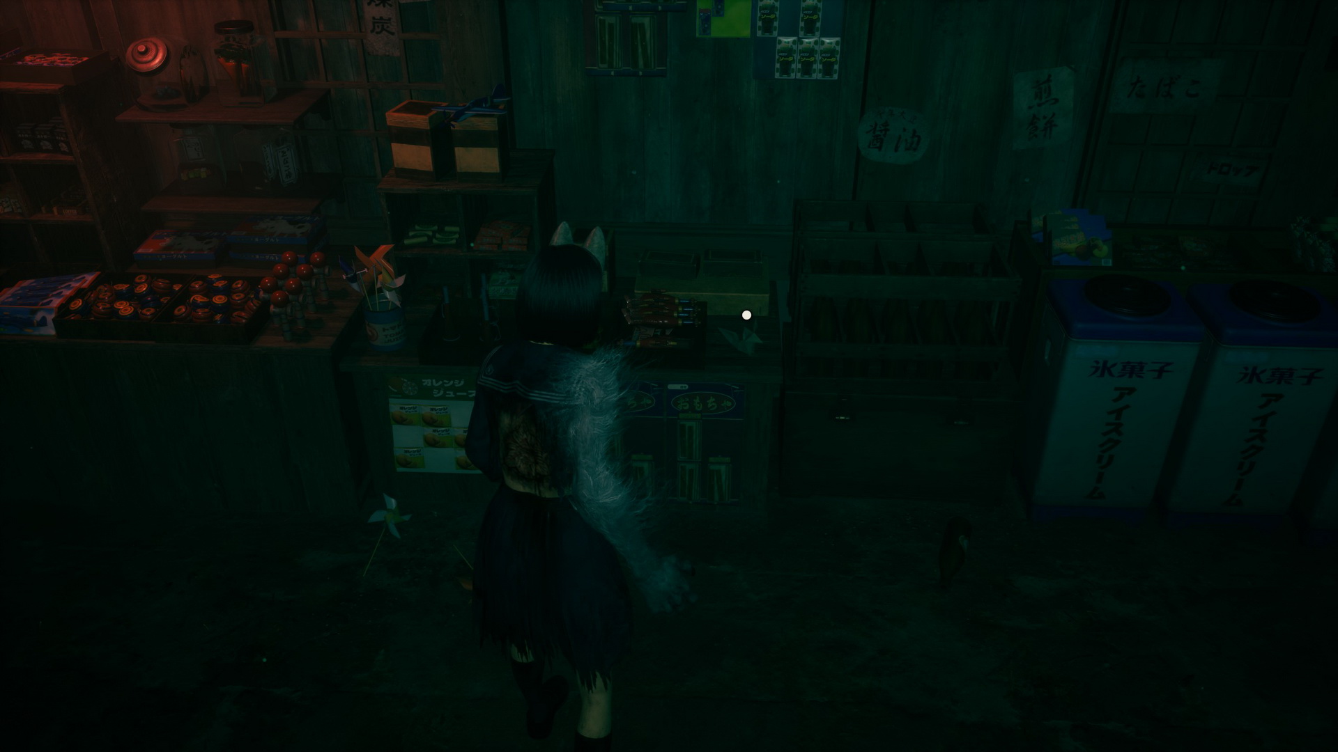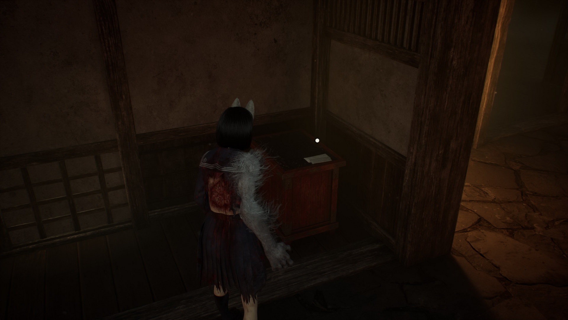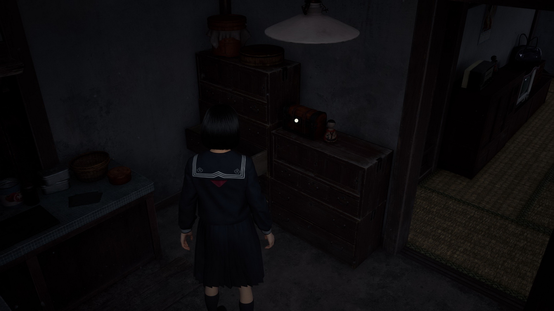 #2Location: Dark Shrine Worship Hall, on a bench in the Chizuruya General Store after flipping the lamp's switch.