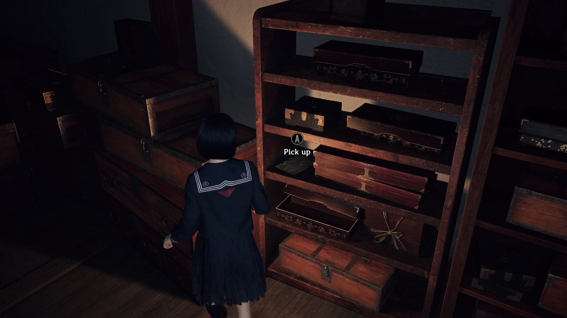 #1Location: Dark Shrine Worship Hall (NG++), on top of the boxes on the northern side of the Chizuruya General Store after flipping the lamp's switch.