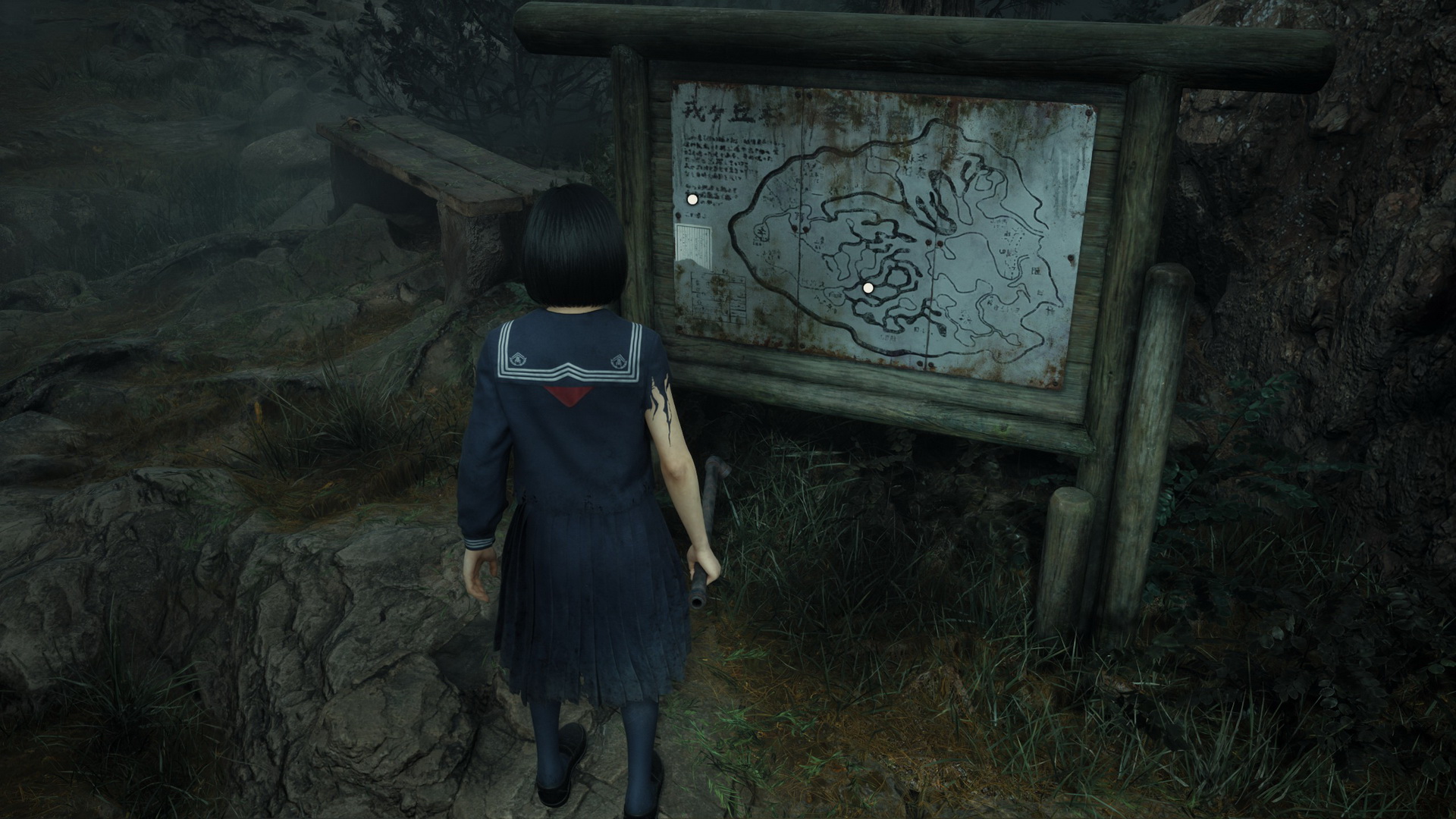 #2Location: Ebisugaoka Part 5 (NG+), on a bench at the top of the stairs next to the fifth Jizo statue.